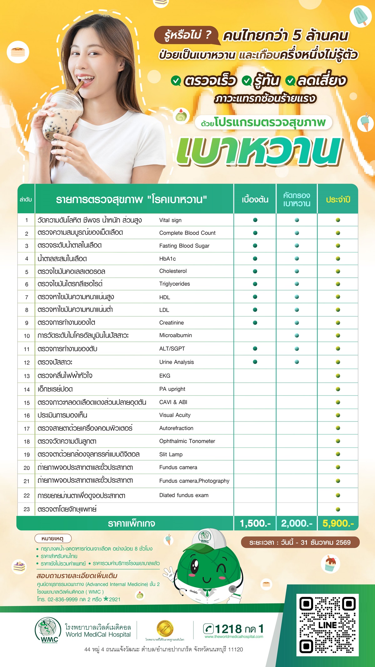 ● โปรแกรมตรวจคัดกรองเบาหวาน ราคา 2,000 บาท