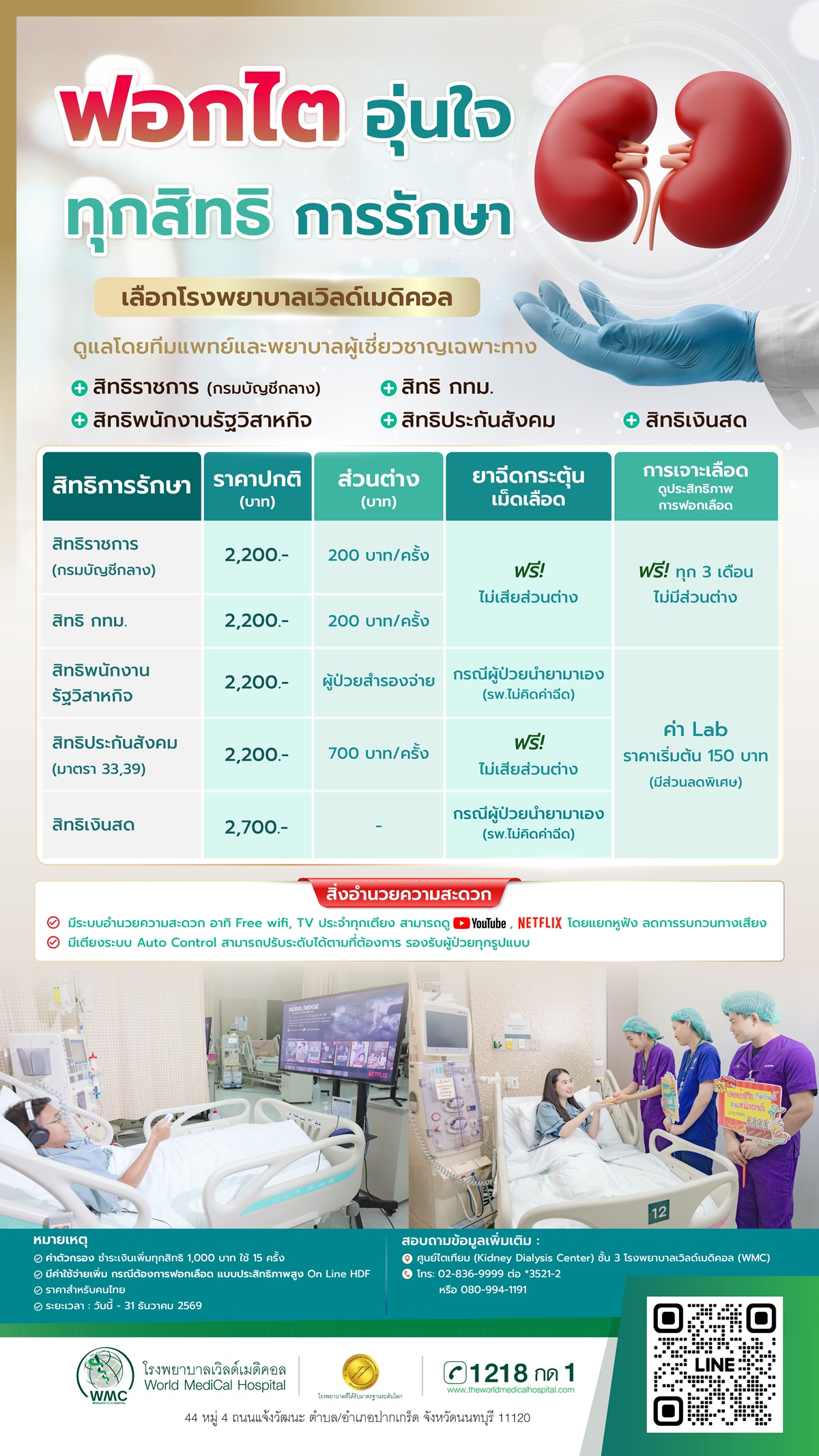 ฟอกไต อุ่นใจ ทุกสิทธิการรักษา เลือกโรงพยาบาลเวิลด์เมดิคอล