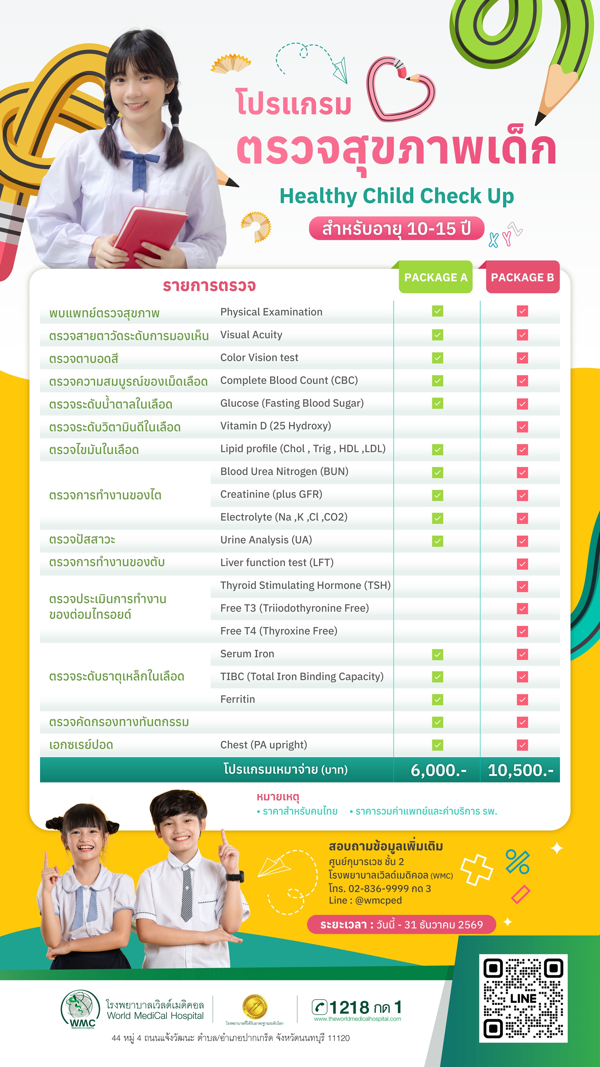 แพ็กเกจ ตรวจสุขภาพสำหรับเด็ก